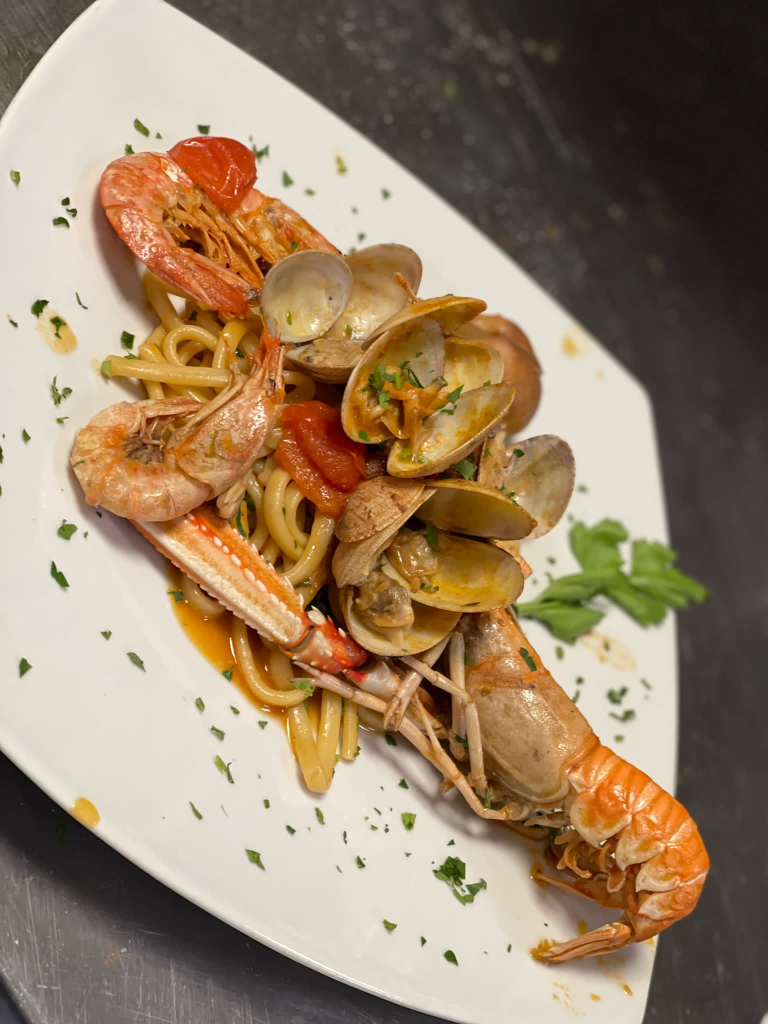 Una delle particolarità del ristorante di Frattamaggiore consiste nel poter scegliere tra varie opzioni. Ora, oltre a poter acquistare pesce fresco oppure sedersi ai tavoli e gustarlo nei vari piatti della tradizione napoletana preparati ad hoc dallo chef, abbiamo riservato parte del locale all’“angolo pescheria”, che propone vendita di pesce freschissimo da portare a casa già cotto e pronto da mangiare. Un take-away del pesce funzionale e ottimo, di cui si può usufruire tutti i giorni della settimana e del weekend, con la sola eccezione del lunedì, dalla mattina a mezzanotte.